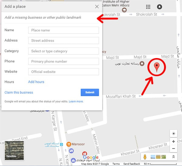 قدم به قدم ثبت مکان در گوگل مپ به صورت تصویری