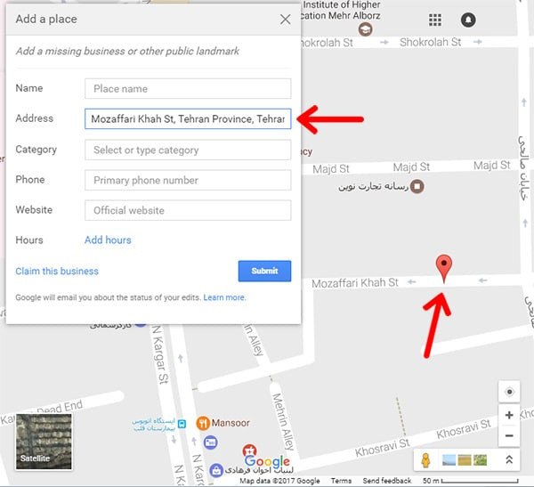 مرحله سوم شروع فرایند ثبت آدرس در گوگل مپ